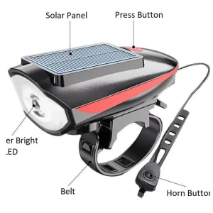 چراغ جلو دوچرخه بوق دار شارژی خورشیدی قیمت اصلی: 420,000 تومان بود.قیمت فعلی: 395,000 تومان.