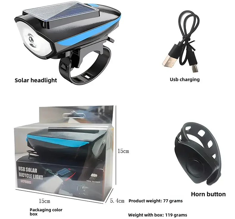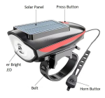 چراغ جلو دوچرخه بوق دار شارژی خورشیدی | سه کاره هوشمند